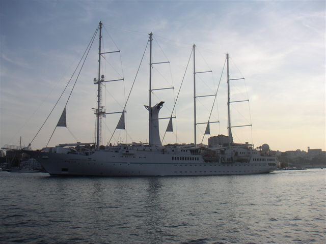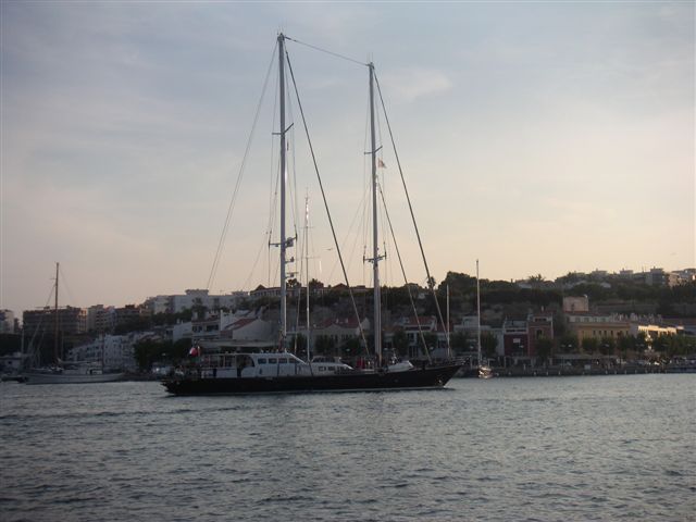 Now I try not to be snobby about boats (i.e. ours is beautiful, why does everyone else sail round in plastic jelly moulds), but there are some out there that are just beyond belief. This particular cruise liner is a favourite of mine, we've seen it in the Caribbean and also here in Mahon. Yes those are masts, yes it does occasionally set sail, yes it is ugly. The second one is a ketch we saw yesterday, somebody spent a lot of money on this boat .... why ?